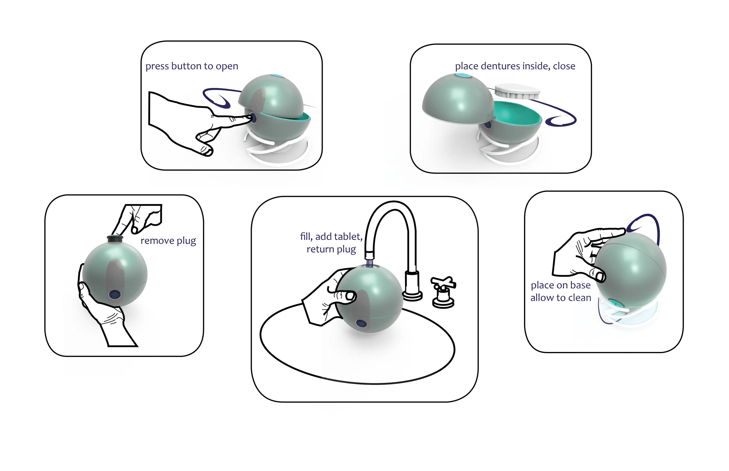 Orbital was designed as a low cost, hands free, denture cleaning device that utilizes the number one Dentist recommended cleaning method, brushing.